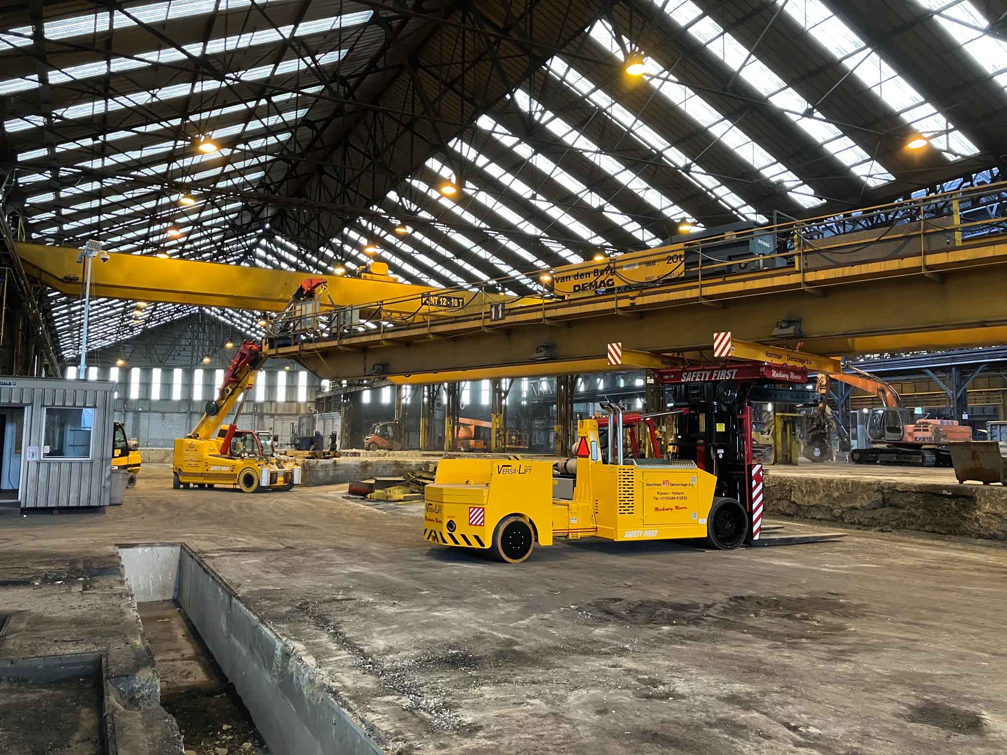 Na een grondige situatiescan plannen we de logistiek van ons materieel. Dit omvat het zorgvuldig transporteren van alle benodigde machines, zoals Versa-Lifts, kranen en heftrucks, naar uw locatie.